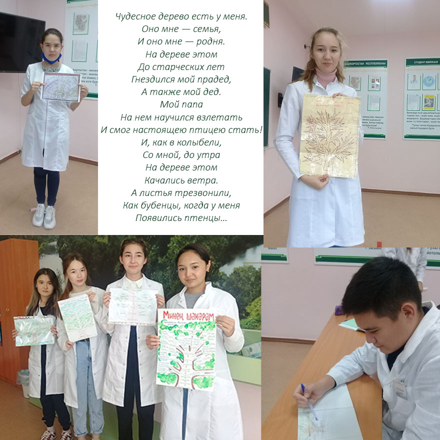 С целью сохранения народных традиций и башкирского языка как Государственного языка РБ, в колледже была организована научно- исследовательская работа среди студентов по изучению своей родословной. Обучающиеся с большим интересом изучали родословную своей семьи, научились правильно и грамотно её составлять. В результате был оформлен стенд с лучшими работами студентов.