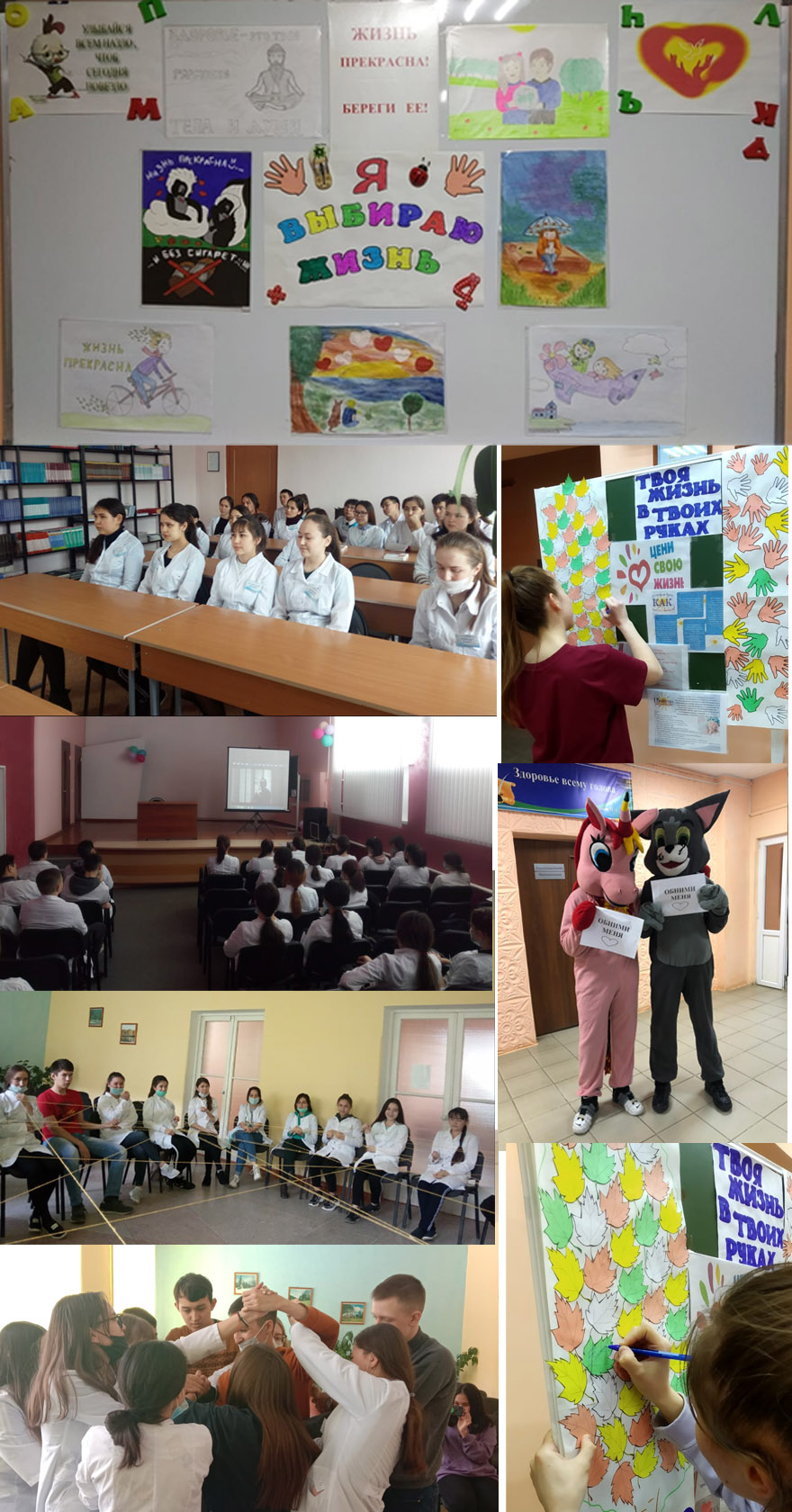 С 01.03. по 05.03.2021г. в целях профилактики суицидального поведения подростков, предупреждения правонарушений среди обучающихся, для студентов 1-4 курсов проведена профилактическая акция «Разноцветная неделя. Я выбираю жизнь». План проведения недели включал в себя следующие мероприятия: классные часы «Я люблю тебя, жизнь»; тренинги психологической разгрузки и снятия эмоционального напряжения с элементами игровых упражнений; демонстрация видеофильма «Жизнь-инструкция по применению», акция «Обними меня». В общежитии проведена викторина «Мы за ЗОЖ!», а также были установлены разноцветные плакаты «Дерево жизни», «Я выбираю жизнь», где всем желающим предлагалось написать свои пожелания.
